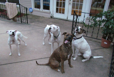 That afternoon, we met "Penny." A friend of ours was working hard on pulling a senior boxer from an AR shelter. The poor thing got admitted and was put on the euthanasia list for the very next day. Why? Because she was old. As we all know, I am a sucker for the old dogs. Our friend, Liana, had orchestrated her rescue and there was only one thing missing. She needed a place to stay for the weekend. Of course, we offered our home. When Penny arrived, I was nothing short of shocked. This dog, who had been sentenced to death for being "old" was merely a pup! She looked like crap because she was dirty, underweight, dehydrated, and covered in fleas. She had cement sores on her hips and elbows and hairloss and open wounds from scratching at her fly and flea bites. Despite that, she was a beautiful dog with the most soulful eyes. Had someone taken just one minute to open up her mouth, they'd have seen the pearly whites that could only belong to a very young dog. It saddens and angers me that she was dismissed so carelessly. After plenty of fresh water, a good flea bath, a meal and an abundance of love and attention, she was feeling very good about her self. She slept with the pack that night and didn't make a peep. When I got up the following morning, she greeted me with the lima bean and was leaping in circles with all four feet off the ground at the same time! She was celebrating! After only a weekend, she was hard to let go on Monday. We could clearly see her potential and she'd have been a fun one to watch blossom into a wonderful companion. We decided that she reminded us of a cross between Laila (formerly Emily) and Enzo. I'm so glad I got to be a part of the team that saved this amazing dog! Good luck Penny!